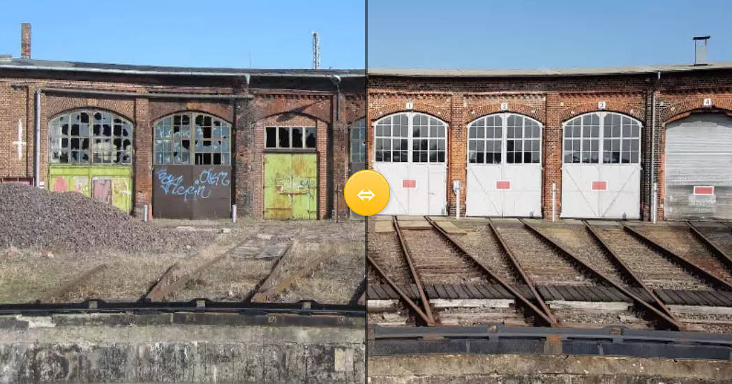 In 2022, the Historic Engine Shed Wittenberge will celebrate its 10th anniversary. Reason enough for us and you to look back a little at our beginnings. On the following page you will find a few photographic comparisons of the state of affairs 10 years ago and the state of affairs today.
