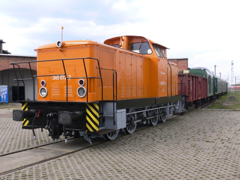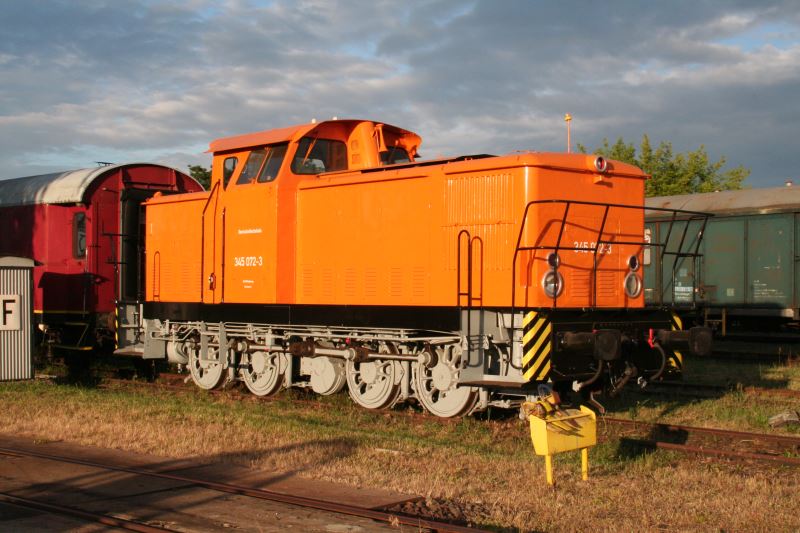 diesel locomotive 345 072-3| Builder: | LEW Henningsdorf | | Type: | V 60 | | Constructed: | 1977 | | Works number: | 15603 | | Power output: | 650 PS | | Maximum speed: | 60 km/h | | State: | Exhibit |