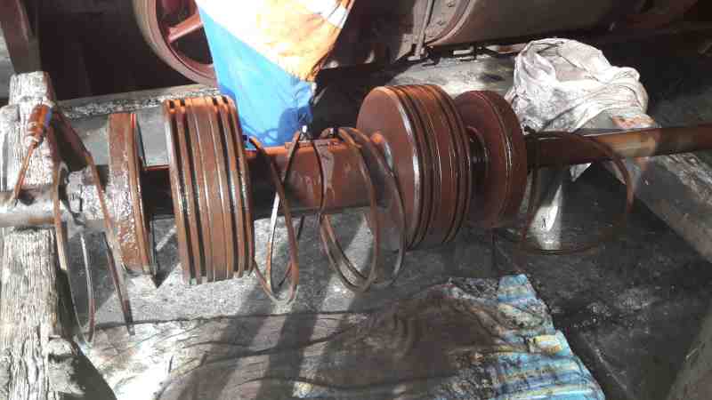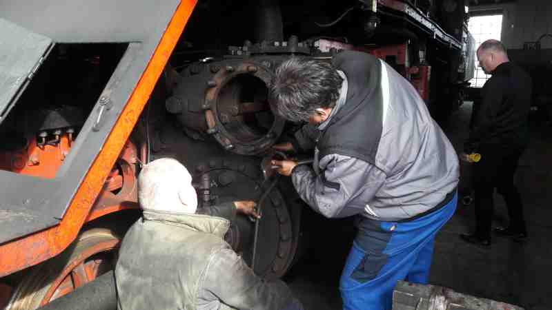 Last Saturday was devoted entirely to our steam engine 50 3570. Here too some maintenance work had to be done. The colleagues removed the piston valves in the two steam chests in order to clean them and examine them for damages. Here are two pictures of the removal: