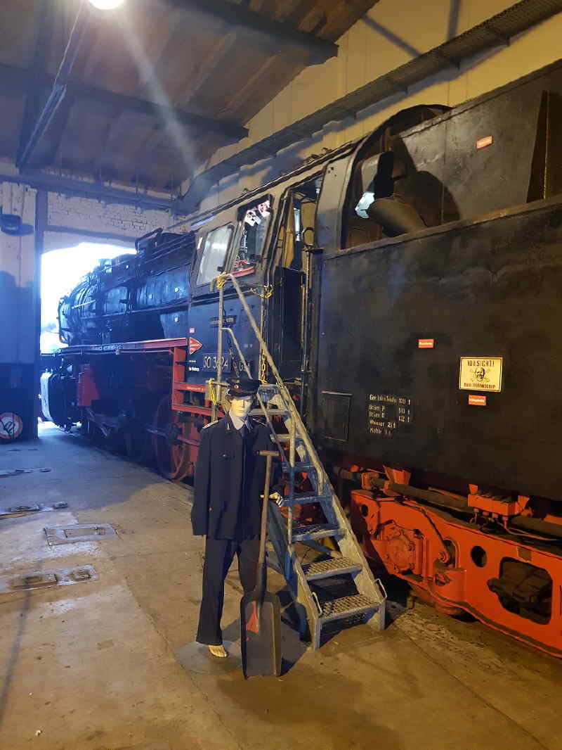 The cab of steam locomotive 50 3624 was prepared for visitors. For example, all the controls on the cab have been marked and the lighting has been added. In addition, a friendly mannequin in a fireman's uniform invites visitors to enter the cab.