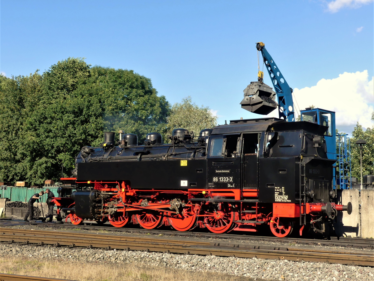 With giant strides we are approaching our third and last event this year. On 7 and 8 October, if possible, everything that can move itself will steam and diesel again. Tickets for the event are available on site for € 8,- (adults) / 4,- (children) / 20,- (families). Of course, there are quite a few preparations to be made, which have been with us for some time now and are becoming more and more intensive the closer we get to the date. What exactly will be in use? First of all, there are our two steam locomotives 50 3570 and Emma, which are already in the starting blocks. This time they will be supported by the steam locomotive 86 1333 of the Pressnitztalbahn, which will interrupt its journey home from Hamburg especially for our event. Incidentally, the locomotive was built in 1939 at the Floridsdorf locomotive factory in Vienna and was initially used not far from Wittenberge in Waren, Wittstock, Parchim and Güstrow. So it's a home game, so to speak.