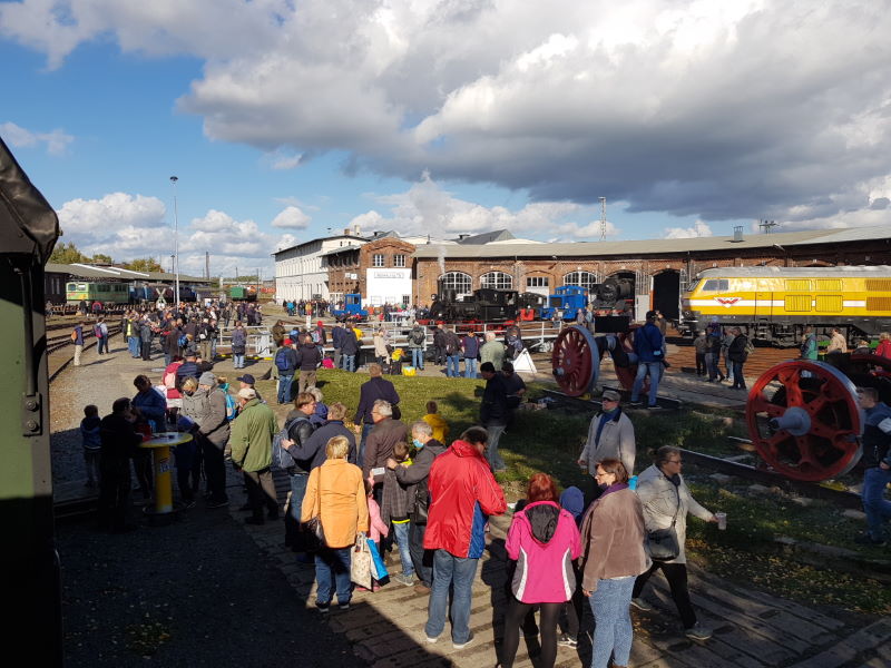 Noch einmal können die Besucher am Wochenende mit der 503570-4 auf dem Führerstand mitfahren. Die Schlange reißt bis zum Nachmittag nicht ab. Familie Jung aus Lindow (Mark) ergattert einen Platz. "Es ist einfach toll. Wir sind das erste Mal hier und total begeistert, was hier geboten wird", erzählt Steffi Jung.