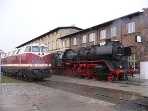 Then after 15 years slumber, a miracle happened: steam locos moved back into the half roundhouse. In autumn 2010, the town of Wittenberge had acquired the land of the former railway depot as well as the two surviving loco sheds, the turntable, the water towers and all the track. In summer 2011 extensive renovation work began with the assistance of funding from the European Union, the State of Brandenburg and of the federal government along with the reconstruction of the half roundhouse to create the largest railway museum in Brandenburg. In autumn 2012 came the day: the historic loco depot once again opened its doors.