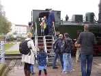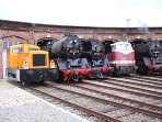 Undoubtedly, the stars of the collection are the four steam locos of class 50.35, for such a long time typical of Wittenberge depot. Apart from these, visitors can also admire the cute little industrial loco Emma and a class 44 heavy freight loco, as well as seven main-line diesels and seven smaller diesel locos The railway enthusiasts also look after a hospital carriage of the Deutsche Reichsbahn, the car-carrier which formed part of the first GDR ministerial train and a number of hand-trolleys. The signal box "Wm", built in 1909, is also part of the railway museum and anyone who wishes to try their hand on the levers can find out just how much physical effort lay behind resetting points and signals in the old days.