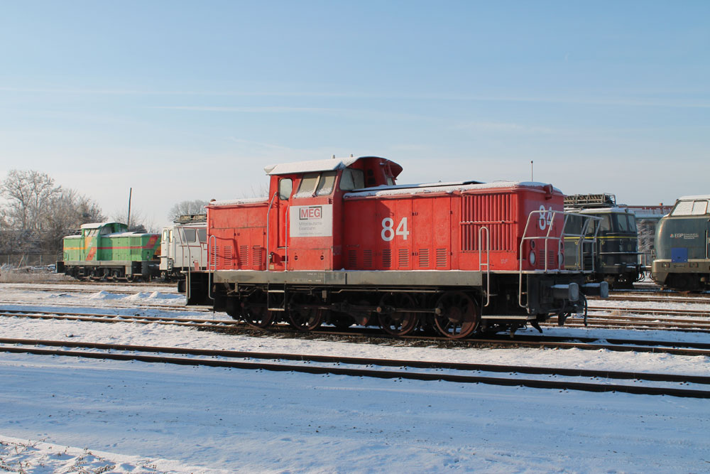 This loco was acquired by the Mitteldeutsche Eisenbahn Gesellschaft (MEG) in January 2003 which used it as a shunter until the middle of 2012, including time on the private works railway at the chemical factory BUNA.