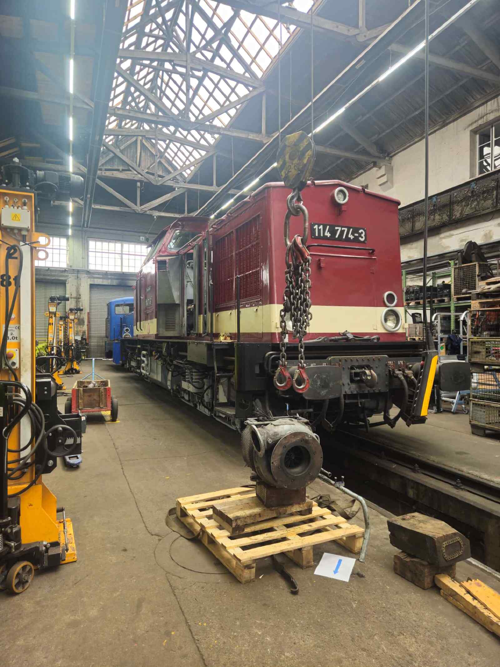 Vor dem Lokschuppen sonnten sich unsere Diesellok 114 774 und die Dampflok 50 3682