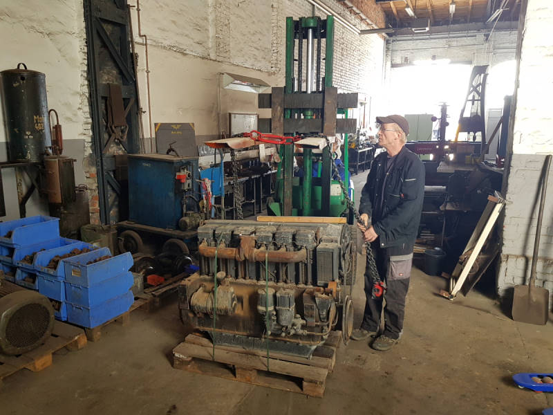 Vor einiger Zeit erhielten wir zwei luftgekühlte Dieselmotoren aus DDR-Produktion, die auch in Rangierlokomotiven zum Einsatz kommen. Dafür haben wir Transportrahmen gebaut. Die Motoren werden nun konserviert und lackiert. Einer wird in unserer Werkstatt als Schauobjekt ausgestellt. Der andere wird eingelagert.