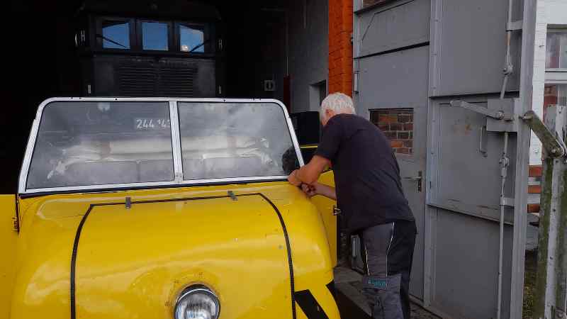 The Trabant trolley also had to undergo a small repair. During the last operation, the windscreen had been damaged and had to be replaced. Fortunately, new panes of safety glass could be procured and installed.