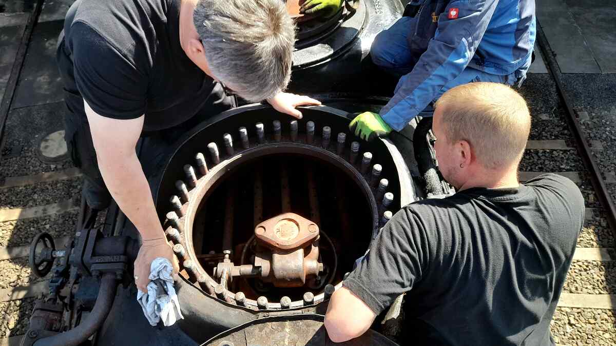 In addition, the steam valve on our steam locomotive 50 3570 was reinstalled, which had suffered damage during the locomotive's last run and has since been repaired by a specialist workshop.