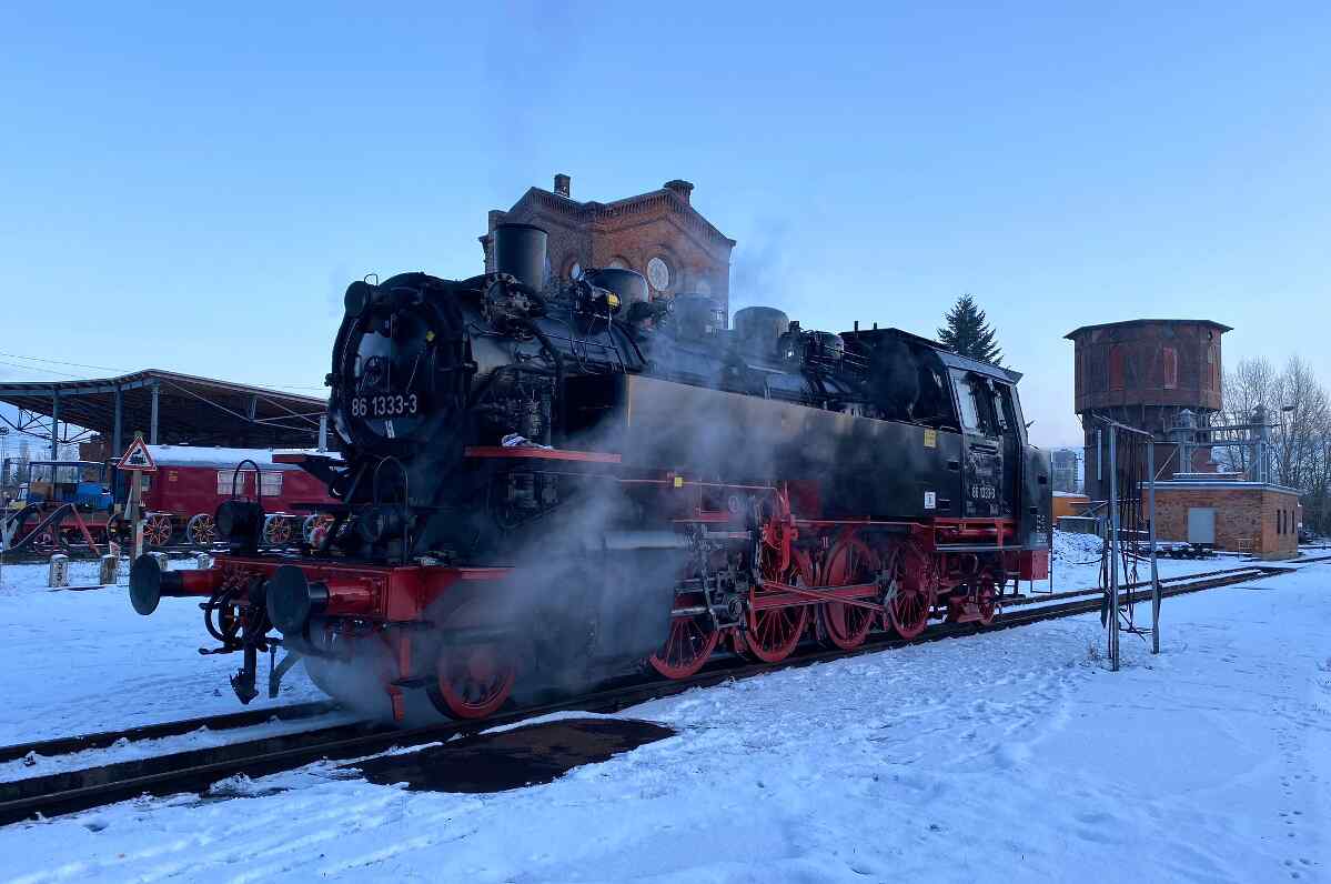 Nun kehrt auch im Museum ein wenig Weihnachtsruhe ein. Unsere Gastlokomotive 86 1333 ist von ihrem letzten Einsatz auf der Heidekrautbahn bei Berlin wohlbehalten wieder in Wittenberge angekommen und verbringt nun die nächsten Wochen und Monate unter Dach bei uns.