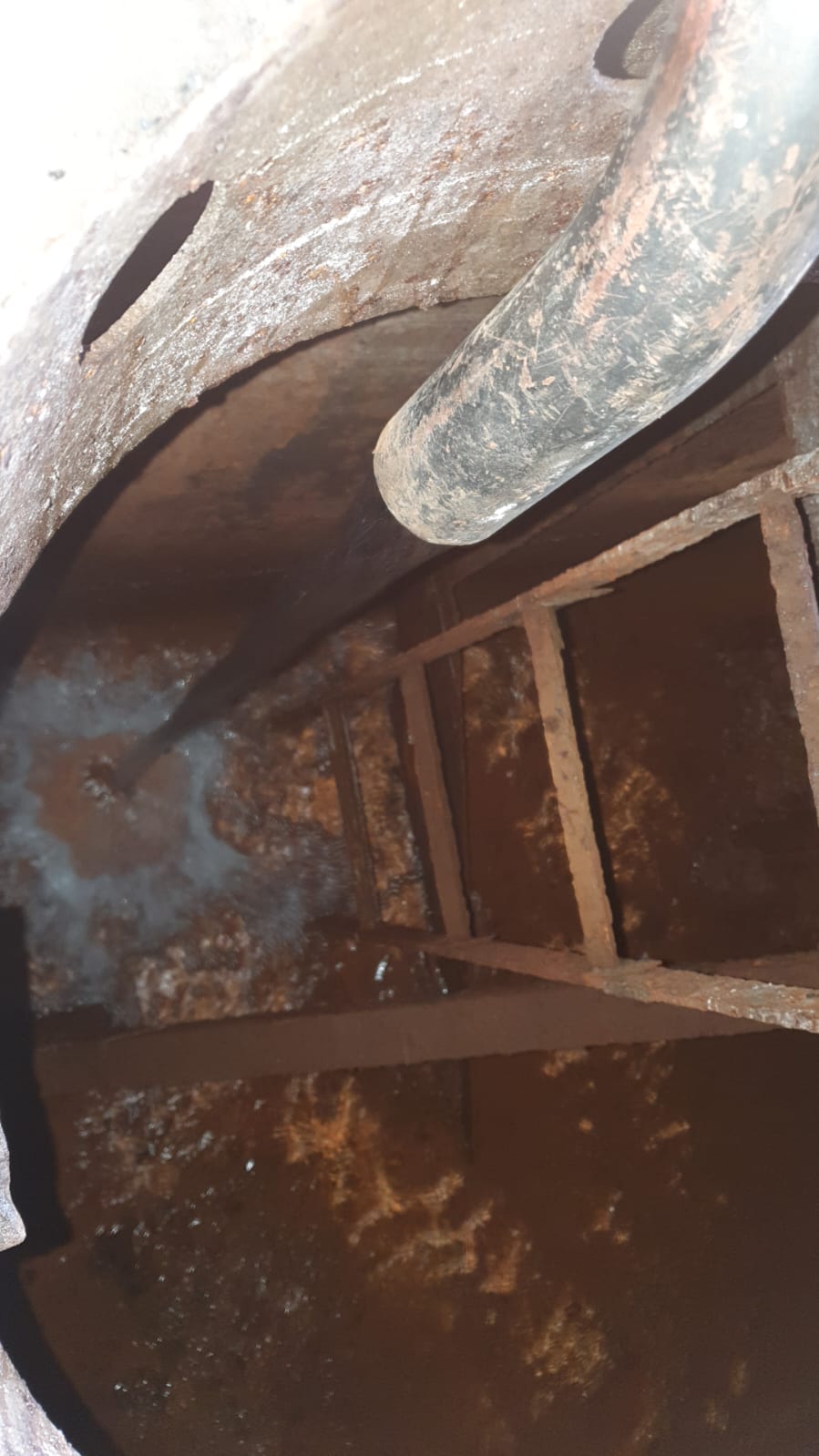 Und um sicherzugehen, dass auch nicht die kleinste Undichtigkeit am Kessel besteht, ist ein Kollege in die Feuerkiste gestiegen und leuchtet die Rohrwand ab. Zum Glück läuft aus keinem der Rohre Wasser.