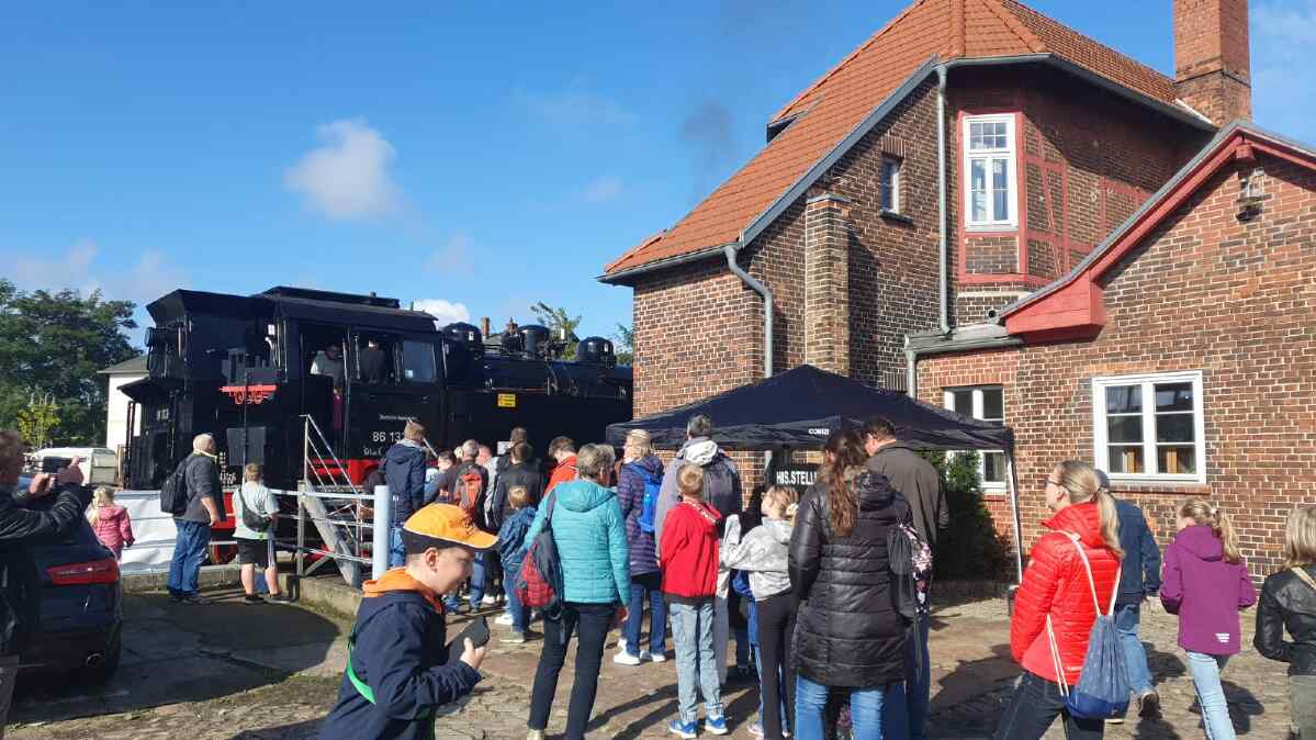 On the days of the event, we shuttled with our locomotive between the station building and the level crossing on Berliner Straße over a distance of around 600 metres in each direction. That was enough of a run to show our travelling guests what our locomotive is capable of.