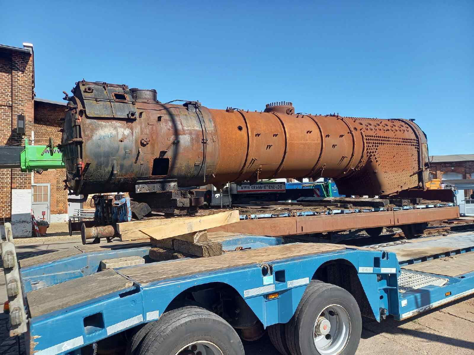 Einige Gäste fragten auch nach dem Lokomotivkessel, der seit Kurzem auf einem Transportwagen im Gelände des Museums gelagert wird. Heute wollen wir das Geheimnis etwas lüften. Es handelt sich um einen Kessel, wie er auch auf unseren Dampfloks der Baureihe 50 zum Einsatz kommt. Die derzeit auf den Lokomotiven montierten Kessel werden in absehbarer Zeit ihre Einsatzgrenze erreichen bzw. ihr Weiterbetrieb erfordert umfangreiche Arbeiten. Für den Fall, dass einer der vorhandenen Kessel zu hohe Investitionen benötigt, konnten wir diesen Ersatzkessel erwerben, dessen Substanz gut ist. Getreu dem Motto "Besser haben als brauchen" wird er nun zunächst konserviert und im Museumsgelände eingelagert, bevor über seine weitere Verwendung entschieden wird.