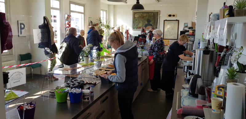 Of course, the rolling stock and equipment also had to be prepared for the event. Locomotives had to be cleaned and supplies provided, barbecues, benches and tables prepared and food and drink bought, baked and cooked. Our special thanks at this point once again go to the Wittenberge fire brigade. Once again, they cooked their delicious pea soup and provided it for our guests.