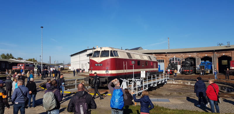 In bright sunshine, the Historic Engine Shed Wittenberge was celebrated its autumn festival last weekend. The event was very well attended. We welcomed a total of 1,400 guests. The consistently positive feedback encourages us that we are on the right track. Many thanks for your visit and also a big thank you to the RBB radio station in Perleberg, which referred to our event in its weekend tips. But let's take it one step at a time: On the Friday before the event, we noticed that a small hare had fallen into the turntable pit and could not get out under its own power. So we held a hare hunt, caught the little guy and released him. He is doing well again.