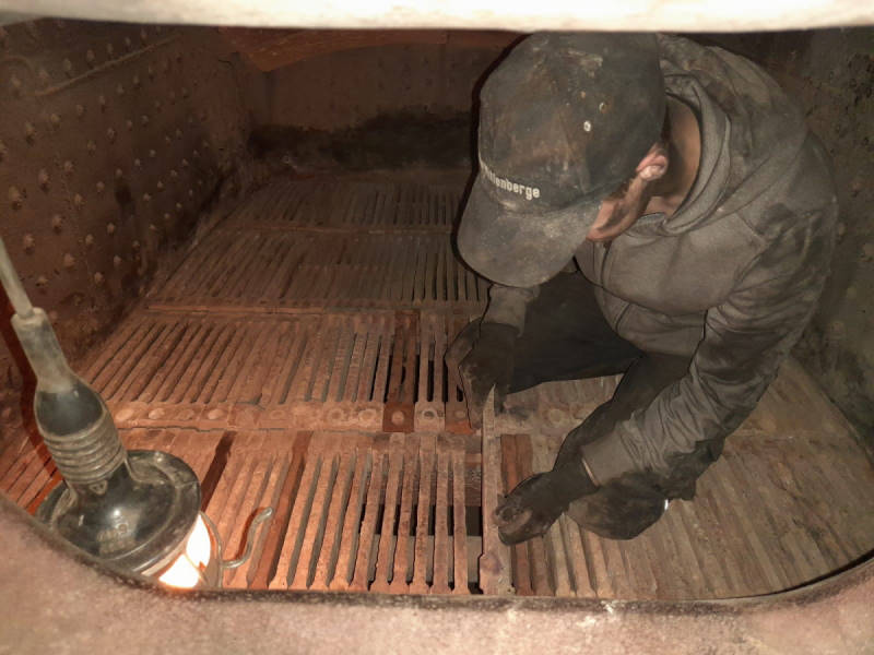 Last Saturday the active members of the club were busy again. Work continued on the 50 3570. First, the ash box was thoroughly cleaned. Then the examination pit had to be cleaned of the slag.