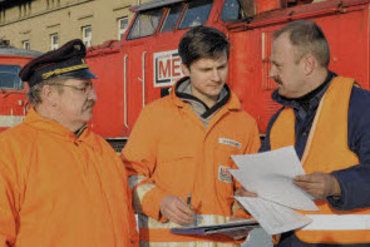 Klaus Ludwig (l.) und Dirk Endisch (r.) bei der Protokollübergabe der beiden Loks. |