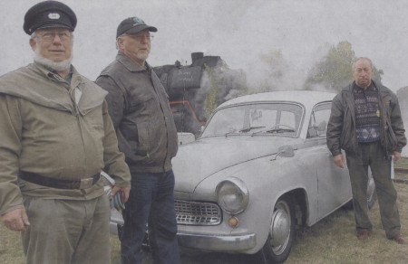 Lothar Meyer (von links), Günter Eichner und Besitzer Gerald Müller posierten vor dem Wartburg 311 Kombi aus dem Jahr 1959. Die Mitglieder des Oldtimer-Stammtisches Pretzier feierten dessen zehnjähriges Bestehen auf dem Gelände des Lokschuppens in Salzwedel.